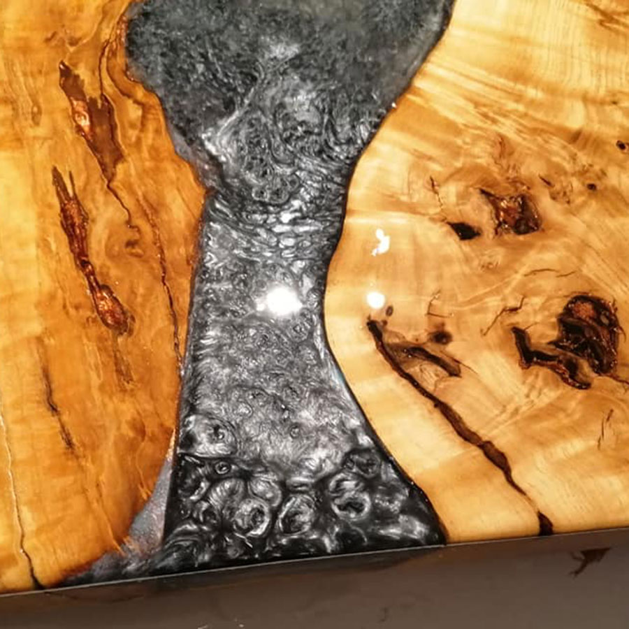 Maßgefertigte Möbel aus Epoxidharz und Zirbenholz. Nachhaltige Schmuckstücke aus recycelten Materialien – einzigartig und umweltfreundlich.